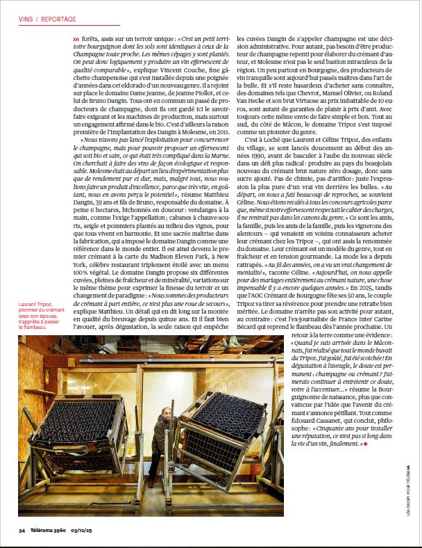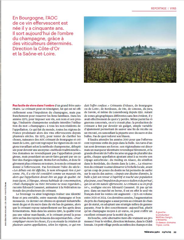 Nous avons eu le plaisir de voir nos Crémant mis en lumière dans un très bel article de Télérama paru le 6 décembre.